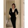 Beautiful rich family daughter feeling long black sweater with knitted backing dress women's autumn and winter