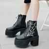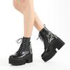 Vyšívaný design Šněrovací dámské kotníkové boty zip s kulatou špičkou čtvercové vysoké podpatky Dámské krátké boty na motorku gotický styl