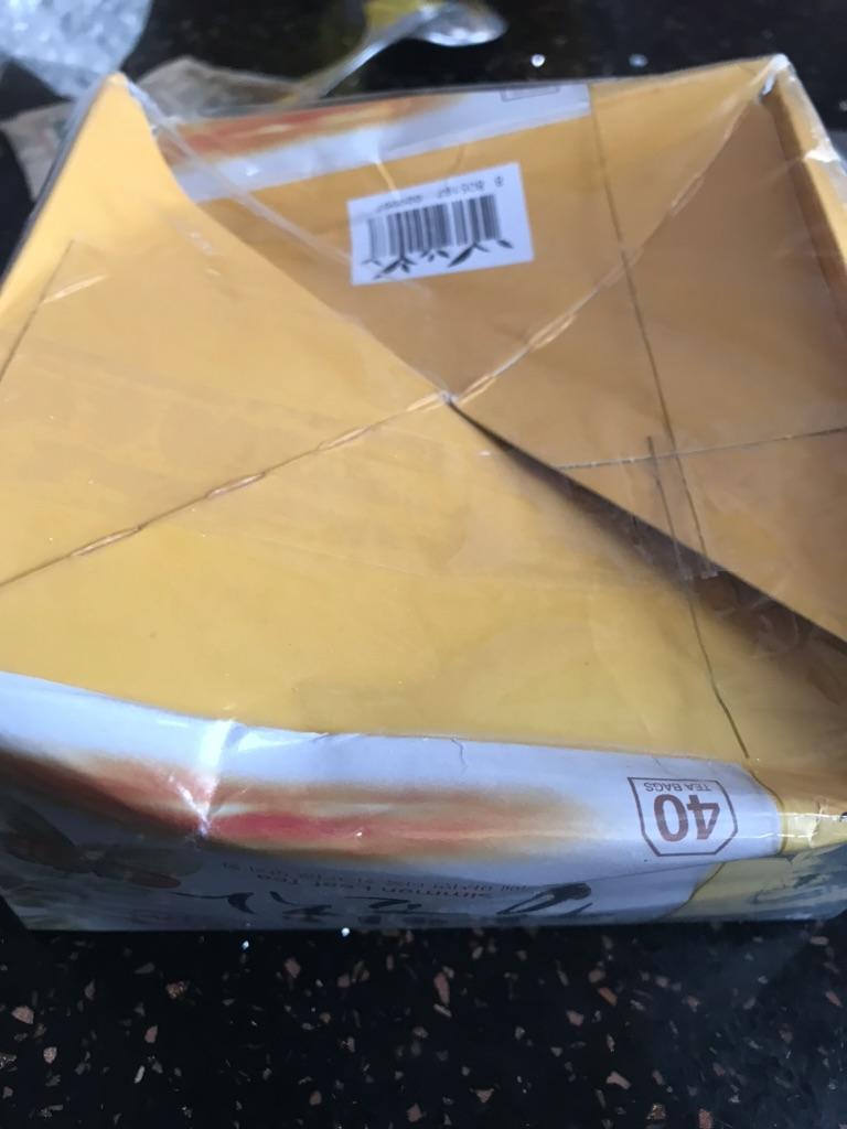 Doručeno kurýrem! Krabice je zmačkaná, ale čaj není poškozen! Čaj chutná dobře.
