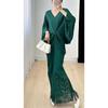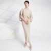 Dámské plisované šaty Hit Barva V límec Batwing Dlouhý rukáv Volné Lýtko Dlouhé Šaty Ležérní styl