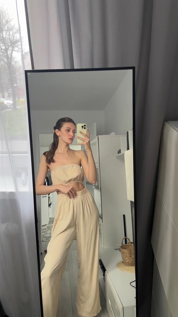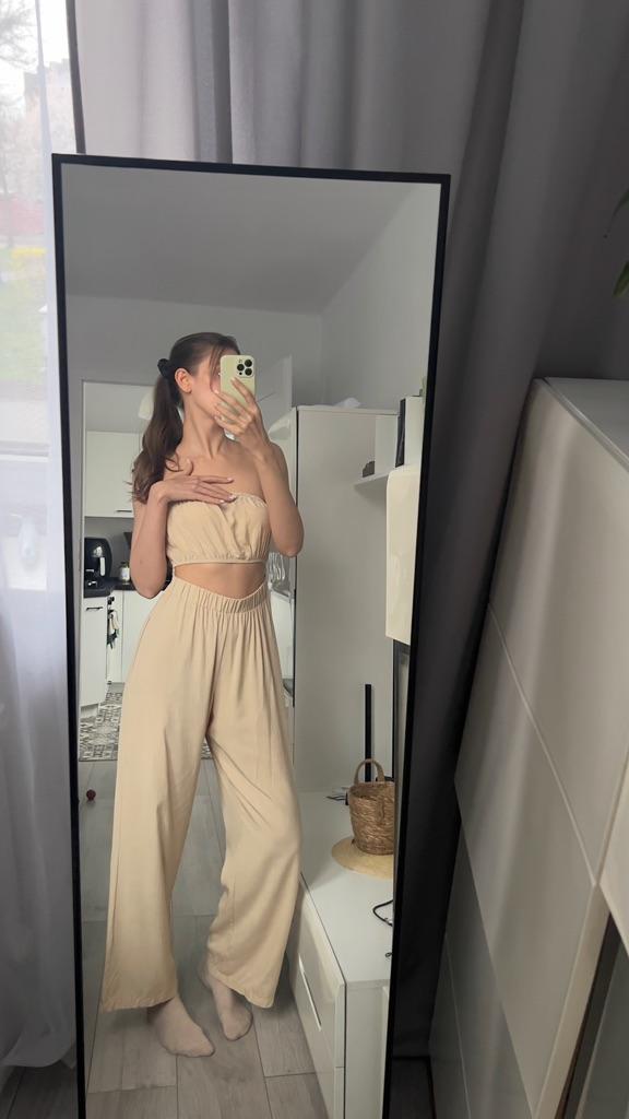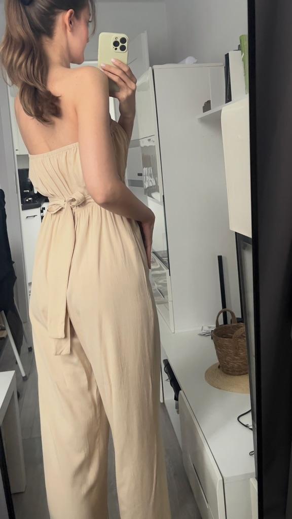 Dobrý overal na léto Bohužel velikost je na mě moc velká, moje parametry jsou na mě S: 79.57.89. Výška 175 cm Látka je lehká a příjemná, ale snadno se mačká. Když jsem produkt obdržel a vyndal z obalu, nevypadal nejatraktivněji. Ale po vyžehlení se to zlepšilo😄 Obecně platí, že vše není špatné, normální kvalita a cena. Doporučuji 🧡