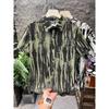 Košile s krátkým rukávem v kontrastním barevném provedení s kravatou pro pánskou letní košili s výklenku, volný a pohledný svetřík s klopou