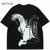 Tričko Harajuku Legrační estetický Black Cat Letter Print Akubi Tričko s krátkým rukávem Hip Hop Neformální Bavlna Volné Letní Topy Trička