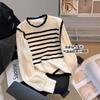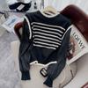 Fake Two Bubble Sleeve French Sweater Women's Autumn/Winter Striped Unique Long Sleeve Top