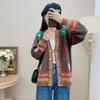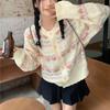 Autumn Print Floral Long Sleeve V Neck Knitted Cardigan Coat Women Fashion Slim Fit Elegant Vintage Sweater Women Winter Elegant Knitwear Jacket 24949