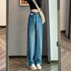 Džínové dámské modré velké tenké rovné nohavice se širokými nohavicemi