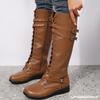 fashion Knee High Boots Women Fashion Buckle High Tube PU Leather Boots Woman Zip Low Heels Long Botas Mujer Plus Size 43