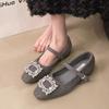 Luxury Crystal Buckle Fleece Ballet Flats Woman Winter Square Toe Warm Wool Mary Janes Shoes Ladies Brand Design Party Zapatos