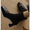 High Heeled Short Boots, Women's Plush Insulation, 2024 Spring, Autumn and Winter New Patchwork Square Toe Retro Fashion Boots