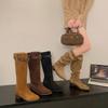 Retro Kulatá špička Silný podpatek Nýty Westernové Kovbojské boty Matné Ale Ne Nad koleno Boty na podpatku Módní Rytířské boty Dámské boty