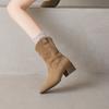 Dámské semišové Chelsea boty se špičatou špičkou Podzim Zima 2024 Nové klínkové kovbojské boty Western kotníkové nazouvací Velkoobchod Zapatos De Mujer