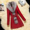 Kožená Dámská Plus Bavlněná bunda Slim Tenká PU kožešinová kožešina Imitace liščí kožešiny Límec Velký stříbrná Liščí kožešina