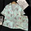 Rabbit Printing Ladies Pajamas Set Summer Kawaii Loungewear Women Green Homewear Cute Cartoon Korean Fashion Version Outfits
