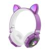 Wireless/Wired Headphones with Microphone, Cat Ear LED Light/RGB Light Design on Both Sides, Bluetooth 5.0/Wire Length 1m, TF Card Insertable, Foldable, Size Adjustable, School/Tablet/Travel/Ages 5+