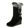 Good Quality Winter Boots Women Warm Shoes Platform High Heels 2019 Black Gray Real Fur Ladies Snow Boots Plus Size 88