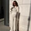 Spring and Summer Women's Casual Temperament Set Pleated Collar Loose Long Sleeved Pendant Wide Leg Pants Two-piece Set