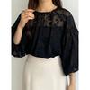 Móda Elegantní Dámská Volná Halenka O Krk Lucernový Rukáv Ležérní Opalovací Košile Jaro Léto Dámské Dírkované Krajkové Topy 3472