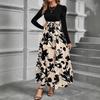 Dámské šaty s dlouhým rukávem na jaro léto s květinovým potiskem