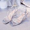 Hadovité sandály s kamínky dámské 2025 léto nové vysoké podpatky motýl květina jehlový podpatek vílí styl módní sandály