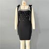 A New Large-sized Women's Chiffon Long-sleeved Shoulder Beaded Dress with Elegant Style for Autumn