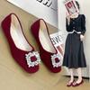 French square buckle rhinestone commuter wedge single shoes 2024 new suede low heel one pedal ladyshoes