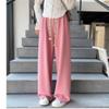 Women's Spring/Summer Thin Korean-Style Waffle-Patterned Pink Wide-Leg Pants - Loose Slim-Fit Straight-Leg Trousers Athletic and Casual Wear