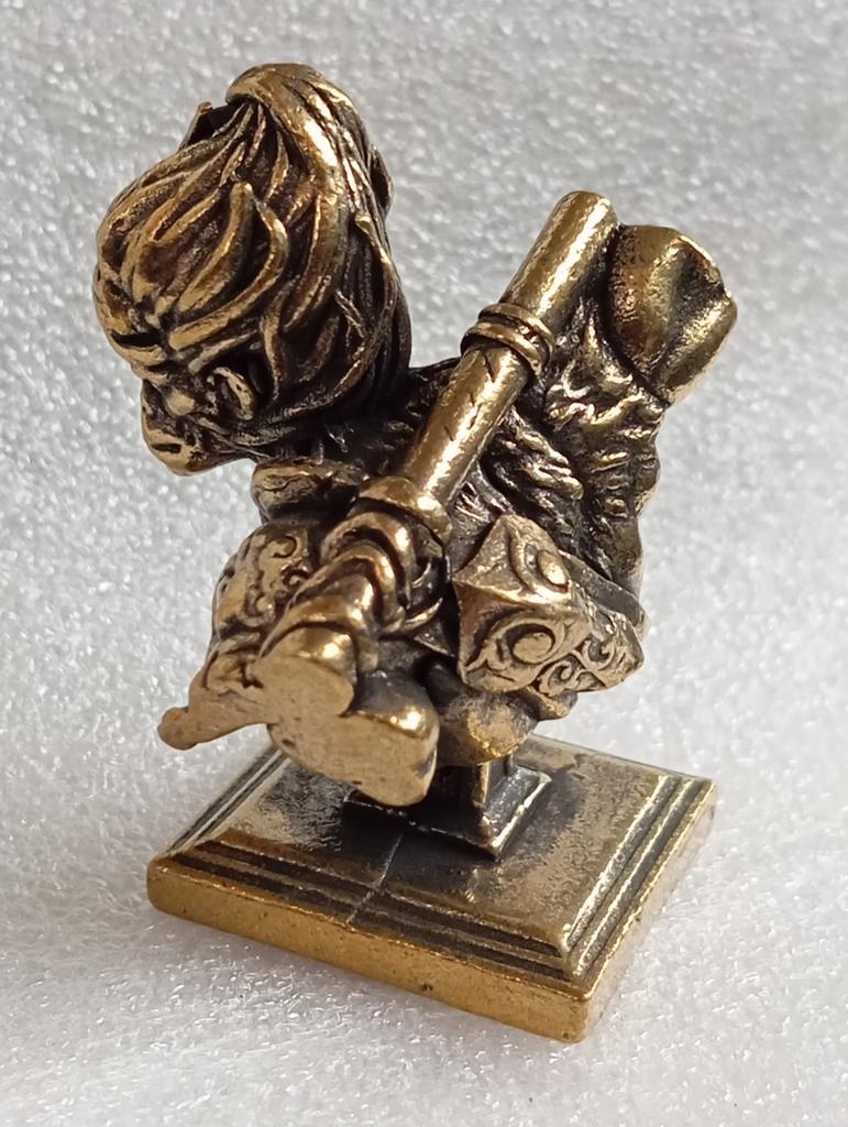 This intricately designed statue captures the mythical essence of the legendary Monkey King from Chinese folklore. Crafted from high-quality yellow brass, it showcases Wukong in a dynamic pose, wielding his iconic Ruyi Jingu Bang staff. The exquisite detailing and craftsmanship bring to life the character's bold spirit and mischievous nature, making it a captivating centerpiece for any collection. Ideal for enthusiasts of mythology and art, this statue offers a blend of cultural heritage and timeless beauty.