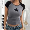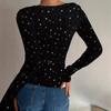 Dámské módní ležérní jarní a podzimní halenky a košile s dlouhým rukávem a výstřihem do oka s potiskem hvězd