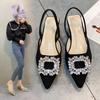 Baotou sandals female year new fairy wind French gentle rhinestone pointed back strap thick heel single shoes
