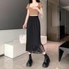 Podzimní a zimní dámská sukně Sametová střapec Dlouhá sukně Pružný pas Černá sukně A-Line Dlouhá sukně