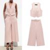 Women Fashion Two Piece Set Pink Tank Tops & Straight Leg Pants Vintage V-Neck Single Breasted Female Chic Pants Suit