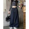 Petite High-Waisted Dark Blue Wide-Leg Jeans - Women's Autumn/Winter Straight Loose Casual Pants