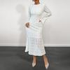New Date Party Elegant and Sweet Style One Shoulder Long Sleeved Solid Color Women's Dress