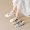 A Shallow-mouthed Single-shoe Girl Is Wearing Flat Soft-soled Grandma Shoes on One Foot
