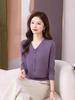 Autumn and Winter V-neck Sweater Knitted Bottoming Shirt Women's Korean Version of Loose Buttons Western Style Long-sleeved Bright Silk Blouse