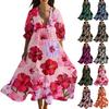 Women's Summer Fashion V-neck Retro Floral Print Short Sleeved Beach Dress With Lace Patchwork Dress