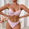 Ladies Sexy Solid Color Lace Sling Bra Lace-Up Panties Two-piece Split Sexy Suit With Steel Ring