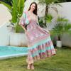 Women's Maxi Dress V-Neck Half Sleeve Multicolor Printed Long Dress Boho Dress