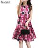 ZANZEA Women Casual Round Neck Short Sleeve Summer Floral Dress