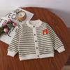 Korean Kids' Soft Striped Cardigan Sweater - Unisex, Spring & Autumn, Trendy Knitted Coat