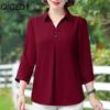 Casual Fashion Elegant Solid Color Striped Printed Button Shirt Summer New Polo-Neck Half Sleeve Loose Tops Ladies Clothing