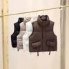 This stylish and versatile women's vest is perfect for the autumn and winter seasons. Crafted in a casual Korean style, it features a sleek stand collar and a solid pattern that complements any outfit. The vest is made entirely of high-quality polyester and filled with cozy down cotton for optimum warmth and comfort. Designed with a loose fit, it offers easy layering over your favorite sweaters or tops. The sleeveless design and convenient zipper closure make it a practical choice for any casual outing. With no additional decorations, this vest maintains a clean and modern look.