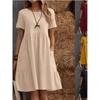 Summer European And American Ladies Loose Pockets Solid Color Round Neck Women's Cotton And Linen Dress Loose Casual Simple Elegant Daily Long Skirt