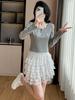 Spring new fashion shawl design sense embroidered letter sweater age-reducing pleated skirt three-piece set