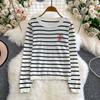 A New Versatile Striped Knitted Sweater with A Round-neck Lace Long-sleeved Top and A Unique Style