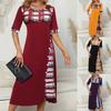 Women's Summer Round Neck Half Sleeve Irregular Printed Casual Long Skirt