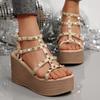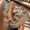 2024 Nové léto Dámské Sandály na podpatku Nýtované společenské boty Guma na platformě Římské sandály Sexy dámské lodičky