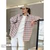 European and American Retro Plaid Lapel Long sleeve Loose Shirts Plaid Lapel Loose Fitting Shirt