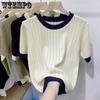 Summer Outfit Pullover Round Neck Striped Ice Silk Half Sleeved Plus Size Women's T-shirt