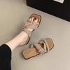 Fashion versatile retro woven pleated cover toe slope heel slippers girls summer new with skirt thick bottom cool slippers